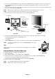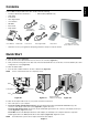 English Contents Your new NEC AccuSync LCD monitor box* should contain the following: • AccuSync LCD monitor with tilt base • Audio Cable • Power Cord • Video Signal Cable • User’s Manual • CD-ROM • Base Stand • Cable Holder DVI-D Cable (LCD92XM only) User’s Manual * Audio Cable Power Cord • DVI-D Cable (LCD92XM only) Cable Holder Video Signal Cable CD-ROM Base Stand AccuSync LCD monitor (base stand not connected) Remember to save your original box and packing material to transpo