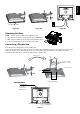 English Non-abrasive surface Figure R.1 Figure R.2 Figure R.3 Removing the Base NOTE: Always remove the Base when shipping the LCD. 1. Place monitor face down on a non-abrasive surface (Figure R.1). 2. While using your thumbs, press the bottom tabs upward to unlock. 3. Press the top tabs down to unlock and pull off the stand. Connecting a Flexible Arm This LCD monitor is designed for use with a flexible arm. Please use the attached screws (4pcs) as shown in the picture when installing.