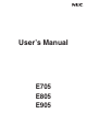 Setup 1. Determine the installation location NEC recommends the following battery use: CAUTION: Installing your LCD monitor must be done by a qualified technician. Contact your dealer for more information. • Place “AAA” size batteries matching the (+) and (-) signs on each battery to the (+) and (-) signs of the battery compartment. • Do not mix battery brands. • Do not combine new and old batteries. This can shorten battery life or cause liquid leakage of batteries.