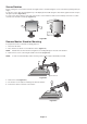 NOTE: Use only VESA-compatible alternative mounting method. Handle with care when removing stand. NOTE: Match “TOP SIDE” mark on stand to top side of the monitor head when re-attaching stand. English 7. Reverse this process to re-attach stand. “TOP SIDE” mark Please match top side of the monitor Flexible Arm Installation This LCD monitor is designed for use with a flexible arm. To mount the monitor to a flexible arm: 1.