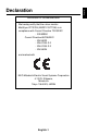 English Declaration Declaration of the Manufacturer We hereby certify that the colour monitor MultiSync FP1375X (NSZ3101STTUW) is in compliance with Council Directive 73/23/EEC: - EN 60950 Council Directive 89/336/EEC: - EN 55022 - EN 61000-3-2 - EN 61000-3-3 - EN 55024 and marked with NEC-Mitsubishi Electric Visual Systems Corporation 4-13-23, Shibaura, Minato-Ku Tokyo 108-0023, JAPAN English-1