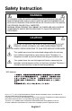 Safety Instruction WARNING TO PREVENT FIRE OR SHOCK HAZARDS, DO NOT EXPOSE THIS UNIT TO RAIN OR MOISTURE. ALSO, DO NOT USE THIS UNIT’S POLARIZED PLUG WITH AN EXTENSION CORD RECEPTACLE OR OTHER OUTLETS UNLESS THE PRONGS CAN BE FULLY INSERTED. REFRAIN FROM OPENING THE CABINET AS THERE ARE HIGH VOLTAGE COMPONENTS INSIDE. REFER SERVICING TO QUALIFIED SERVICE PERSONNEL. CAUTION RISK OF ELECTRIC SHOCK • DO NOT OPEN CAUTION: TO REDUCE THE RISK OF ELECTRIC SHOCK,DO NOT REMOVE COVER (OR BACK).