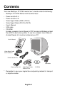 Contents Your new MultiSync FP1375X monitor box* should contain the following: • MultiSync FP1375X Monitor with tilt/swivel base • Power cord for E.U. • Power cord for U.K. • Video Signal Cable (VGA to DVI-A) • Video Signal Cable (DVI-D to DVI-D) • User’s Manual • USB cable • CD-ROM: Includes complete User’s Manual in PDF format and Windows related files (INF file and colour profile). To see the complete User’s Manual, Acrobat Reader 4.0 must be installed at your PC.