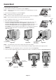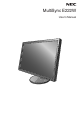 English Contents Your new NEC MultiSync LCD monitor box* should contain the following: • MultiSync LCD monitor with tilt/swivel/pivot/height adjust base • Power Cord • Base stand • Video Signal Cable (15-pin mini D-SUB male to 15-pin mini D-SUB male) • Video Signal Cable (DVI-D to DVI-D) • Setup Manual Power Cord (Type of power cord included will depend on the where the LCD monitor is to be shipped) Base stand Setup M anual Setup Manual * 15-pin mini D-SUB male to 15-pin mini D-SUB male