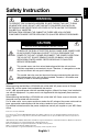 WARNING TO PREVENT FIRE OR SHOCK HAZARDS, DO NOT EXPOSE THIS UNIT TO RAIN OR MOISTURE. ALSO, DO NOT USE THIS UNIT’S POLARIZED PLUG WITH AN EXTENSION CORD RECEPTACLE OR OTHER OUTLETS UNLESS THE PRONGS CAN BE FULLY INSERTED. REFRAIN FROM OPENING THE CABINET AS THERE ARE HIGH VOLTAGE COMPONENTS INSIDE. REFER SERVICING TO QUALIFIED SERVICE PERSONNEL. CAUTION RISK OF ELECTRIC SHOCK • DO NOT OPEN CAUTION TO REDUCE THE RISK OF ELECTRIC SHOCK, MAKE SURE POWER CORD IS UNPLUGGED FROM WALL SOCKET.
