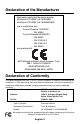 Declaration of the Manufacturer We hereby certify that the colour monitor MultiSync LCD1525X (LA-1526HMW) MultiSync LCD1525X (LA-1526HMW-BK) are in compliance with Council Directive 73/23/EEC: - EN 60950 Council Directive 89/336/EEC: - EN 55022 - EN 61000-3-2 - EN 61000-3-3 - EN 55024 and marked with NEC-Mitsubishi Electric Visual Systems, Corp. 686-1, NISHIOI OI-MACHI ASHIGARAKAMI-GUN KANAGAWA 258-8533, JAPAN Declaration of Conformity This device complies with Part 15 of FCC Rules.