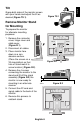Grasp both sides of the monitor screen with your hands and adjust the tilt as desired (Figure TS.1). English Tilt Figure TS.1 Remove Monitor Stand for Mounting To prepare the monitor for alternate mounting purposes: 1. Remove the connector cover, hinge cover and cable cover. (Figure R.1) 2. Disconnect all cables. 3. Place monitor face down on a nonabrasive surface. (Place the screen on a 32 mm platform so that hole of stand match to screw location) (Figure R.2). 4.