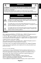 TO PREVENT FIRE OR SHOCK HAZARDS, DO NOT EXPOSE THIS UNIT TO RAIN OR MOISTURE. ALSO, DO NOT USE THIS UNIT’S POLARIZED PLUG WITH AN EXTENSION CORD RECEPTACLE OR OTHER OUTLETS UNLESS THE PRONGS CAN BE FULLY INSERTED. REFRAIN FROM OPENING THE CABINET AS THERE ARE HIGH VOLTAGE COMPONENTS INSIDE. REFER SERVICING TO QUALIFIED SERVICE PERSONNEL. CAUTION RISK OF ELECTRIC SHOCK • DO NOT OPEN CAUTION TO REDUCE THE RISK OF ELECTRIC SHOCK, DO NOT REMOVE COVER (OR BACK). NO USER SERVICEABLE PARTS INSIDE.