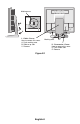 English 15-pin mini D-SUB 15-pin mini D-SUB Mac Adapter (not included) Figure B.1 Figure A.1 Signal Cable AC Power Cord Clip 1. Cables pass through in this hole. 2. Connect each connector Power Switch Figure C.1 Power Outlet To Computer Figure D.