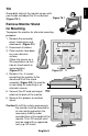 English Tilt Grasp both sides of the monitor screen with your hands and adjust the tilt as desired Figure TS.1 (Figure TS.1). Remove Monitor Stand for Mounting To prepare the monitor for alternate mounting purposes: 1. Remove the connector cover, hinge cover and cable cover. (Figure R.1) 2. Disconnect all cables. Push 3. Place monitor face down on a non-abrasive surface. (Place the screen on a 32 mm platform so that hole of stand match to screw location) (Figure R.2). Figure R.1 4.