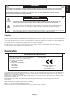 TO PREVENT FIRE OR SHOCK HAZARDS, DO NOT EXPOSE THIS UNIT TO RAIN OR MOISTURE. ALSO, DO NOT USE THIS UNIT’S POLARIZED PLUG WITH AN EXTENSION CORD RECEPTACLE OR OTHER OUTLETS UNLESS THE PRONGS CAN BE FULLY INSERTED. REFRAIN FROM OPENING THE CABINET AS THERE ARE HIGH VOLTAGE COMPONENTS INSIDE. REFER SERVICING TO QUALIFIED SERVICE PERSONNEL. CAUTION RISK OF ELECTRIC SHOCK • DO NOT OPEN CAUTION: TO REDUCE THE RISK OF ELECTRIC SHOCK, DO NOT REMOVE COVER (OR BACK). NO USER SERVICEABLE PARTS INSIDE.