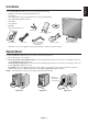 English Contents Your new NEC MultiSync LCD monitor box* should contain the following: • MultiSync LCD monitor with height adjustable stand • Power Cord • Video Signal Cable (15-pin mini D-SUB male to 15-pin mini D-SUB male) • Video Signal Cable (DVI-D to DVI-D) • Audio Cable • User’s Manual • CD-ROM • Cable management cover CD-ROM Audio Cable Cable management cover User’s Manual * Power Cord 15-pin mini D-SUB male to 15-pin mini D-SUB male DVI-D to DVI-D MultiSync LCD monitor Rememb