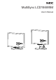 English Contents Your new NEC MultiSync LCD monitor box* should contain the following: • MultiSync LCD monitor with tilt base • Audio Cable • Power Cord • Video Signal Cable (15-pin mini D-SUB male to 15-pin mini D-SUB male) • Video Signal Cable (DVI-D to DVI-D) • User’s Manual • CD-ROM • Cable management cover Cable management cover User’s Manual * Audio Cable Power Cord 15-pin mini D-SUB male to 15-pin mini D-SUB male CD-ROM DVI-D to DVI-D MultiSync LCD monitor Remember to save yo