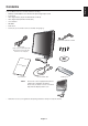 English Contents Your new NEC monitor box* should contain the following: • MultiSync LCD1990SX monitor with tilt/swivel/pivot/height adjust stand • Power Cord • Video Signal Cable (15-pin mini D-SUB male to DVI-A) • Video Signal Cable (DVI-D to DVI-D cable) • User’s Manual • CD-ROM • Cable Cover • Screw (x 4) (to mount the monitor to a flexible arm (page 7)) 15-pin mini D-SUB male to DVI-A Power Cord (Type of power cord included will depend on the where the LCD monitor is to be shipped) S