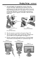 Display Setup - continued 3. Lift the connector cover off as shown (Figure 4). 4. Raise the LCD to the highest position (Figure 5). 5. Tilt the monitor backwards 30 degrees (Figure 6). 6. With the monitor tilted, pivot the screen 90 degrees as shown (Figure 7). NOTE: The monitor cannot pivot properly if the stand is not extended fully and if it is not fully tilted. Damage to the monitor may occur if the monitor is pivoted without being positioned properly.