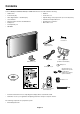 Contents Your new MultiSync LCD4010 / MultiSync LCD4610 monitor box* should contain the following: • LCD monitor • Band x 2 • Power Cord (3m) • Ferrite Core x 2 • Video Signal Cable — SC-B113 (4m) • Speaker Plug x 1set (Required for optional Loudspeakers) • User’s Manual • Stand for the Independence x 2 • Wireless Remote Control and AA Batteries • Thumbscrew for stand x 2 • Clamper x 3 • Main switch cover • Screw (M4 x 8) x 4 • CD-ROM Thumbscrew for stand x 2 Stand for the Indep