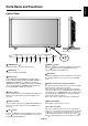 English Parts Name and Functions Control Panel 9 EXIT INPUT MUTE 10 Button Location EXIT INPUT MUTE OFF 8 7 6 5 4 3 2 ON 1 1 POWER button ( ) 7 DOWN ( ) button Switches the power on/off. See also page 18. Activates the OSM menu when the OSM menu is turned-off. Acts as button to move the highlighted area down to select the adjustment with OSM menu. 2 MUTE button Switches the audio mute ON/OFF. 8 EXIT button 3 INPUT button Acts as SET button within OSM menu.