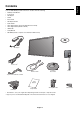 English Contents Your new NEC MultiSync LCD monitor box* should contain the following: • MultiSync LCD Monitor • Power Cord • AC Adapter • Stand • Base Stand • AC Adapter Holder • Cable Holder • Video Signal Cable (15-pin mini D-SUB male to DVI-A) • Video Signal Cable (DVI-D to DVI-D) • USB Cable • Setup Manual • CD-ROM (includes complete User’s Manual in PDF format).