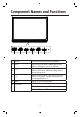 Component Names and Functions –continued LCD22WMGX 1 2 3 9 8 7 6 54 } LCD24WMCX 3 4 } 2 9 8 7 6 10 1 1 SPDIF OUT Out put the audio signal from HDMI. (COAXIAL) 2 Component (Audio) Connect Component Audio. 3 Component (Video) Connect Component Video. 4 Headphone Jack Connect the headphones to the monitor. 5 AUDIO IN Connect audio input from PC. 6 D-SUB Connect to analog RGB input. 7 DVI-D Connect to digital RGB input. 8 HDMI Connect to digital HDMI signals.