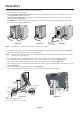 English Figure C.4 Figure C.3 7. Hold all cables firmly and place the cable cover onto the stand (Figure D.1). To remove the cable cover, lift the cover off as shown in Figure D.2. 8. Connect one end of the power cord to the AC inlet on the back of the monitor and the other end to the power outlet. NOTE: Please refer to Caution section of this manual for proper selection of AC power cord. Figure D.1 Figure D.2 9. The Vacation Switch on the left side of the monitor must be turned on.