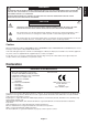 TO PREVENT FIRE OR SHOCK HAZARDS, DO NOT EXPOSE THIS UNIT TO RAIN OR MOISTURE. ALSO, DO NOT USE THIS UNIT’S POLARIZED PLUG WITH AN EXTENSION CORD RECEPTACLE OR OTHER OUTLETS UNLESS THE PRONGS CAN BE FULLY INSERTED. REFRAIN FROM OPENING THE CABINET AS THERE ARE HIGH VOLTAGE COMPONENTS INSIDE. REFER SERVICING TO QUALIFIED SERVICE PERSONNEL. CAUTION RISK OF ELECTRIC SHOCK • DO NOT OPEN CAUTION: TO REDUCE THE RISK OF ELECTRIC SHOCK, DO NOT REMOVE COVER (OR BACK). NO USER SERVICEABLE PARTS INSIDE.