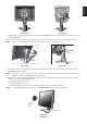 English Remove Monitor Stand for Mounting To prepare the monitor for alternate mounting purposes: 1. Disconnect all cables. 2. Place hands on each side of the monitor and lift up to the highest position. 3. Place monitor face down on a non-abrasive surface (Figure S.1). Figure S.1 4. Place one hand around the base and one hand on the Quick Release Lever. Move the Quick Release Lever in the direction indicated by the arrows (Figure S.2). 5.
