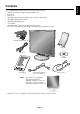 English Contents Your new NEC MultiSync LCD monitor box* should contain the following: • MultiSync LCD monitor with tilt/swivel/height adjust stand • Power Cord • Cable cover • Video Signal Cable (15-pin mini D-SUB male to 15-pin mini D-SUB male) • Video Signal Cable (DVI-D to DVI-D) • USB Cable (LCD2070NX only) • User’s Manual • CD ROM (includes complete User’s Manual in PDF format). To see the User’s Manual, Acrobat Reader 4.0 or higher must be installed on your PC.