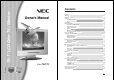 Product Spec. Model Troubleshooting NLT-15 Horizontal size 455 mm Thickness 210 mm Height Weight 6.3 kg Main body Power requirements Television system Television programnme Display Panel Power consumption 405 mm Speaker External input ports PAL/SECAM-B/G, I, D/K /NTSC-M No picture on screen and no sound from speakers. • Insert the AC power cord plug securely in AC power outlet. • Make sure the LCD TV is not in the standby mode (The POWER/Standby indicator is red.
