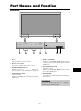 Part Names and Function Front View MENU/ ENTER MENU/ENTER 7 VOLUME DOWN UP LEFT/- RIGHT/+ INPUT SELECT / EXIT VOLUME DOWN UP LEFT/ - 6 RIGHT/+ INPUT SELECT /EXIT 5 4 q Power Turns the monitor’s power on and off. 1 3 2 t LEFT/– and RIGHT/+ Functions as the CURSOR ( / ) buttons and used to adjust the picture parameters in the On-Screen Menu (OSM) mode. w Remote sensor window Receives the signals from the remote control. e POWER/STANDBY indicator When the power is on .....................