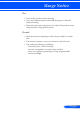 Appendices Problem: Image has vertical flickering bar Use “Clock” to make an adjustment. Check and reconfigure the display mode of your graphic card to make it compatible with the product. Problem: Image is out of focus Adjust the Focus Ring on the projector lens. Make sure the projection screen is between the required distance 3.9 to 39.4 feet (1.2 to 12.0 meters) from the projector (refer to page 16).