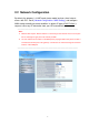 3.2.2 SNTP Setting SNTP mode Select the SNTP mode : On or Off SNTP server address Specify the SNTP server address for time synchronization. Time Zone -GMT Select the Time Zone of your location Time setting You can specify the time with year/month/date /hour/minute /second when you select the SNTP mode with “Off”. 1. 2. Press the “Apply” button (at the bottom) after you finish to save changes. Press the “Reboot” button to apply the changes.
