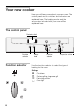 Your new cooker Here you will learn more about your new oven. The control panel and its switches and indicators are explained here. The heating modes and the accessories included with your oven will be explained here. The control panel Electronic clock Function selector Function selector Rotary knob Function selector Use the function selector to select the type of heating for the oven.