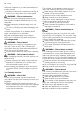 Safety ▶ If smoke is emitted, the appliance must be switched off or the plug must be pulled out and the door must be held closed in order to stifle any flames. Loose food remnants, fat and meat juices may catch fire. ▶ Before using the appliance, remove the worst of the food residues and remnants from the cooking compartment, heating elements and accessories. Opening the appliance door creates a draught. Greaseproof paper may come into contact with the heating element and catch fire.