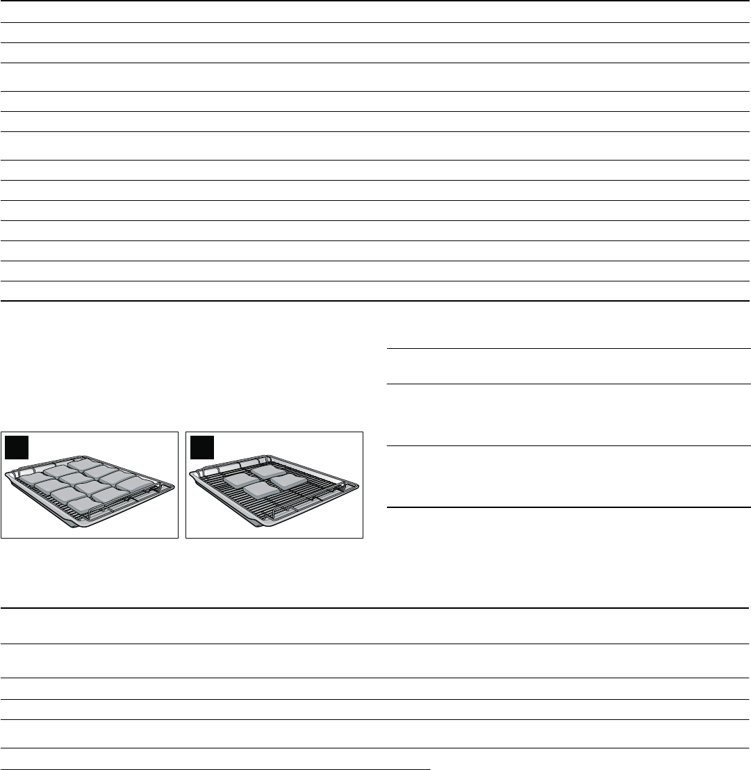 - De gegevens in de tabel zijn richtwaarden, die gelden voor geëmailleerde bakplaten en donkere bakvormen. De waarden kunnen variëren, afhankelijk van de soort en hoeveelheid deeg en de bakvorm.