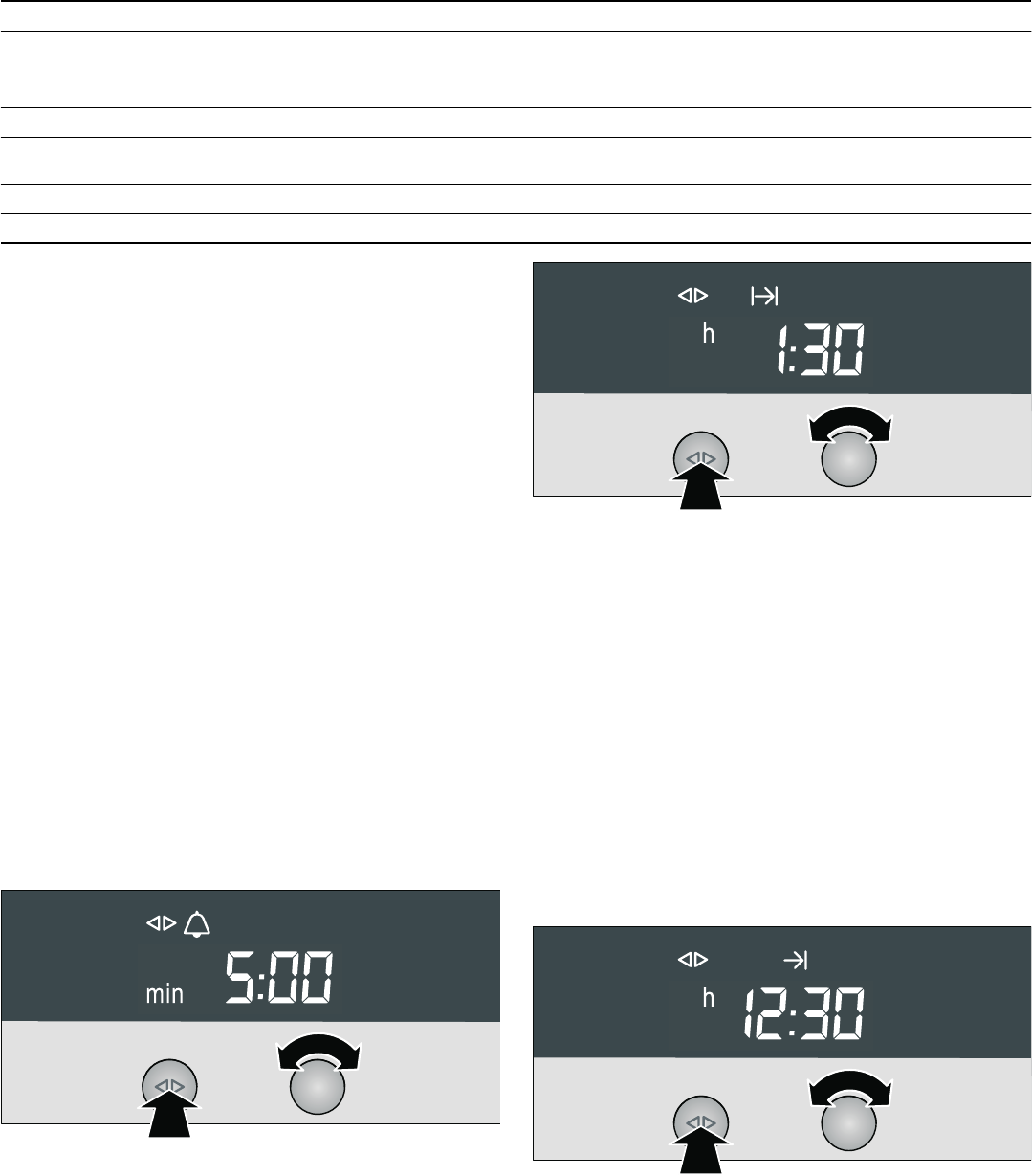 ■ Bij de klokfuncties Kookwekker Q, Gebruiksduur x,