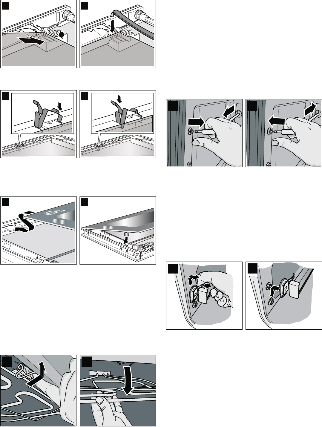 2.Türscheibe seitlich andrücken, bis sie einrastet (Bild F).
