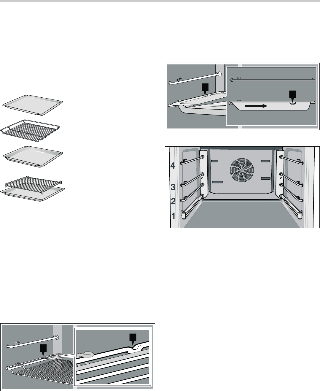 - Zubehör immer richtig herum in den Garraum schieben. Siehe Beschreibung Zubehör in der Gebrauchsanleitung.