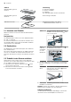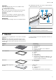 Vor dem ersten Gebrauch 1. Den Rost so auf die Universalpfanne legen, dass beide Abstandshalter hinten auf dem Rand der Universalpfanne liegen. 2. Die Universalpfanne zwischen die beiden Führungsstäbe einer Einschubhöhe schieben. Der Rost ist dabei über dem oberen Führungsstab. 2. Das Zubehör auf beiden Seiten im Bereich de grei- fen und entnehmen. Rost oder Blech Rost auf Universalpfanne 5.5 Weiteres Zubehör 5.4 Zubehör aus dem Garraum nehmen 1.