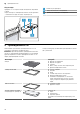 bg Врата на уреда 2. Изтеглете поставката напред Закачване на пръчка 1. Закачете пръчката отзад и я свалете. . 3. Почистете поставката. 2. Избутайте пръчката назад и я закачете надолу върху щифта . 3. Внимавайте куката да е закачена върху щифта . → "Препарат за миене", Страница 29 Закачване на поставките Бележка: Поставките пасват само вляво или вдясно и трябва да се изтеглят напред. 1.