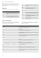 Tested for you in our cooking studio Dish Accessories/cookware Macaroons, 2 levels Universal pan + baking tray Macaroons, 3 levels Baking trays + universal pan * Preheat ** Preheat for 5 mins., do not use quick heat function Shelf posi- Heating tion function Temperature in °C 3+1 4+3+1 90-110 90-110 ‚ ‚ en Steam in- Cooking tensity time in mins. 25-45 30-50 Tips on baking You want to find out whether the cake Push a cocktail stick into the highest point on the cake.