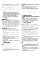 nl Reinigingsfuncties 2. Achtergebleven as in de binnenruimte en bij de ap- 2. LET OP! paraatdeur afnemen met een vochtig doekje. 3. Witte aanslag met citroenzuur verwijderen. Opmerking: Witte aanslag op de emailvlakken kan door te grove verontreinigingen ontstaan. Deze levensmiddelresten zijn ongevaarlijk. De aanslag heeft geen nadelige invloed op de werking van het apparaat. 4. De rekjes inhangen. → "Rekjes", Pagina 23 Gebruik van gedestilleerd water in de binnenruimte leidt tot corrosie.