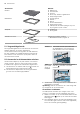 nl Accessoires Accessoires Rooster Braadslede Bakplaat Braadthermometer 5.1 Vergrendelingsfunctie De vergrendelingsfunctie voorkomt dat de accessoires kantelen wanneer ze worden uitgetrokken. U kunt het accessoire tot ongeveer de helft uittrekken, tot deze vastklikt. De kantelbeveiliging functioneert alleen wanneer u het accessoire op de juiste manier in de binnenruimte schuift. Gebruik ¡ Bakvormen ¡ Ovenschalen ¡ Vormen ¡ Vlees, bijv.