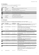 no Bli kjent med 1 Display 2 3 Knapper Betjeningselement 4.2 Knapper Knappene er flater som reagerer på berøring. Velg en funksjon ved å trykke på tilsvarende knapp.