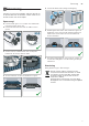 Ugnsluckan qUgnsluckan Hänga på luckan Häng på luckan igen i omvänd ordning. Sköt och rengör enheten ordentligt, så håller den sig fin och fungerar. Här får du lära dig att rengöra luckan. 1. Tryck fast tätningen Ugnsl uckan ‚ längs dropprännan (bild !) eftersom tätningen ‚ kan lossa vid rengöring. 1 Haka av och hänga på luckan Du kan haka av luckan vid rengörning eller för att ta ur luckglasen. Luckgångjärnen har varsin spärr. När spärrarna är nedfällda (bild !) är luckan spärrad.