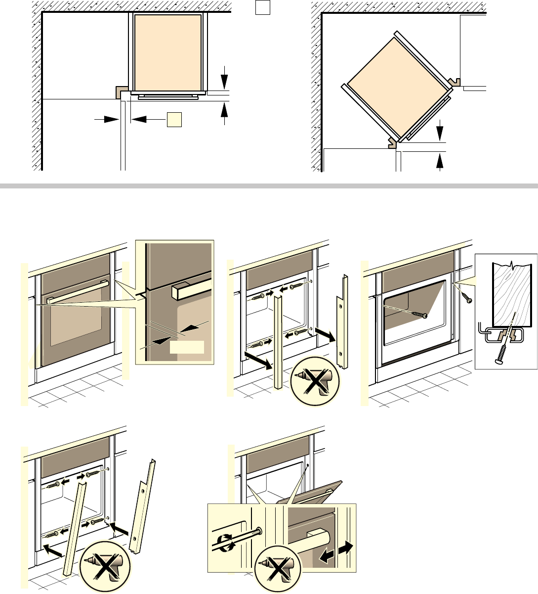 - ■ Fitted units must be heat-resistant up to 90 °C, and adjacent unit fronts up to 65 °C.