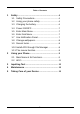 Table of Contents 1 Safety ...................................................................... 4 1.1 1.2 1.3 1.4 1.5 1.6 1.7 1.8 1.9 1.10 1.11 2 Safety Precautions.............................................4 Using your phone safely ...................................4 Charging the battery ..........................................6 Power ON/OFF...................................................7 Enter Main Menu ................................................7 Enter Sub Menu .......................