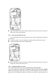 Music playing USB connected Startup alarm Earphone connect New MMS New SMS Talking On Get Started ! Important: This device is designed to be used with a SIM card, use of incompatible SIM cards may result in the device not working and could cause damage to the device or SIM card. Make sure the phone is properly switched off when removing battery and inserting the SIM 2.2 2.2.1 Battery Remove and install of the Battery.