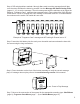 Step 4: DIP switch positions marked 1 through 8 are used to set the message that will play over the stores PA when the button is pressed. Use the Message DIP Switch Setting Chart (pages 11 -12) to set the message. The unit comes preset with the switches set to trigger the bilingual “Fragrance Case” message (see example below). Take notice of the “ON” direction of the switch - ON is UP towards the “ON” marking on the switch and OFF is DOWN towards the numbers on the switch. DIP switch 9 is not used.