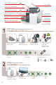 Troubleshooting • Pannes Check power supply: plug, voltage, fuses. In case of problems call Nespresso Club Vérifier: fiche de secteur, tension de réseau, fusible. En cas de problèmes, veuillez appeler le Club Nespresso No light indicator Pas de lumière No coffee, no water Pas d‘eau, Pas de café Water tank empty –> fill water tank Réservoir d’eau vide –> Remplir le réservoir Fill up the water pump Amorcer la pompe Start 2. Stop 1. 1. Open + 2. hold 1. Ouvrir + 2.