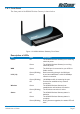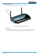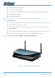 1-4-1 Front Panel The front panel of the HS800 Wireless Gateway is shown below. Figure 1-2 HS800 Wireless Gateway Front Panel Description of LEDs LED State Description Power Off The HS800 Wireless Gateway is not receiving electrical power. Green The HS800 Wireless Gateway is receiving electrical power. Green The WAN port is connected to your xDSL or Cable modem. Green (Blinking) Data is travelling through the WAN port. Green A port has established a valid 10/100Mbps network connection.